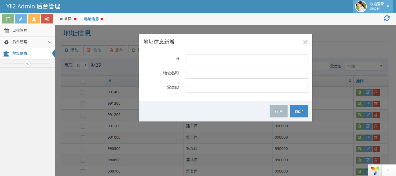 使用的 ace admin 前端框架, 为yii2开发的一个后台模块;