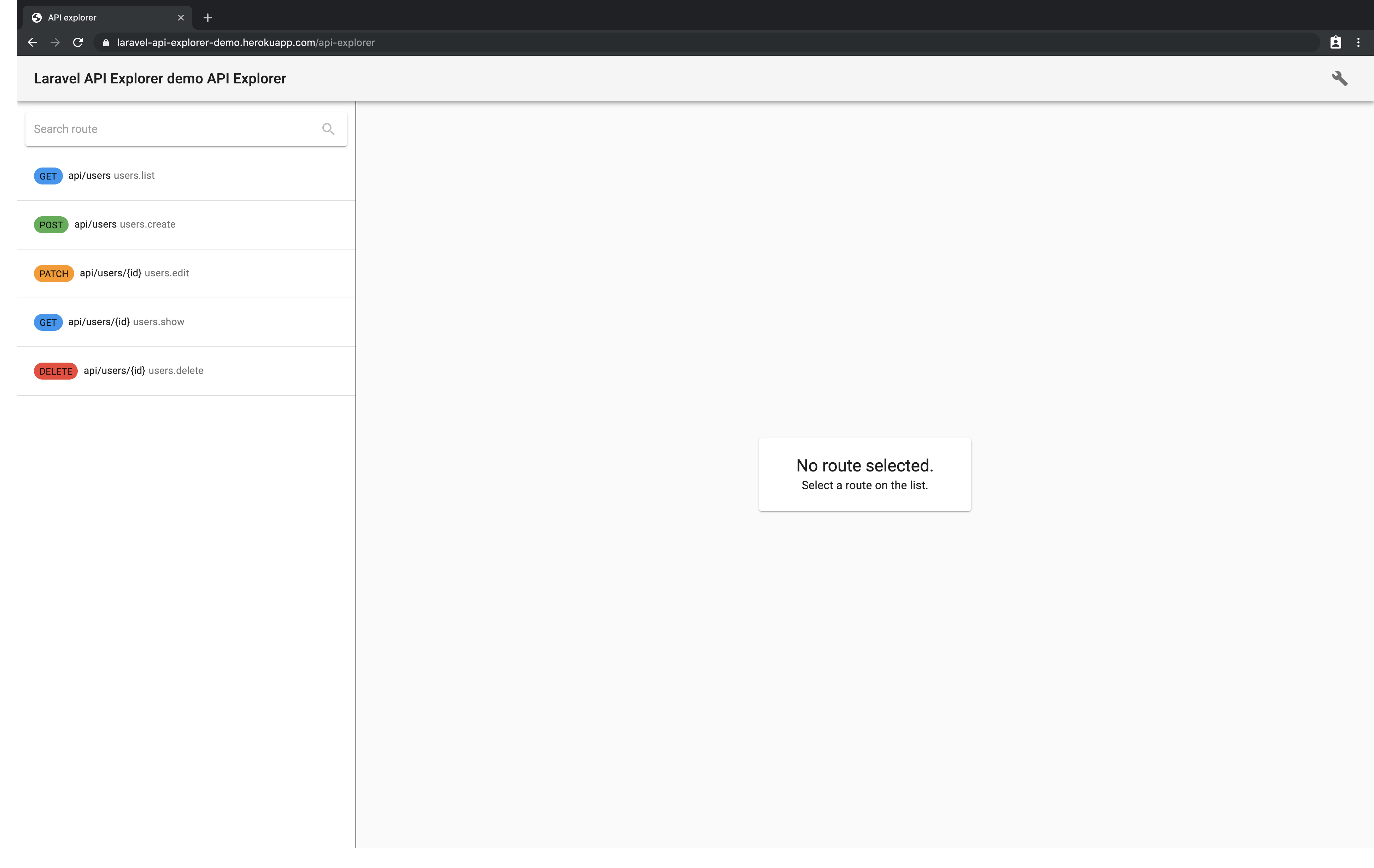 https://laravel-api-explorer-demo.herokuapp.com/api-explorer