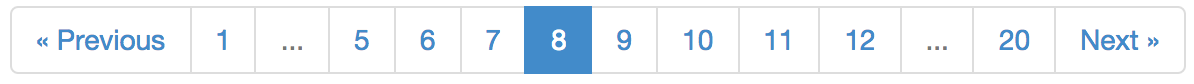By default, no more than 10 pages are shown, including the first and last page, with the overflow replaced by ellipses. To change the default number of pages: